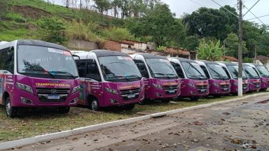 O governador Romeu Zema participou, nesta segunda-feira (3/11), em Chácara, na Zona da Mata, da entrega de 24 micro-ônibus à