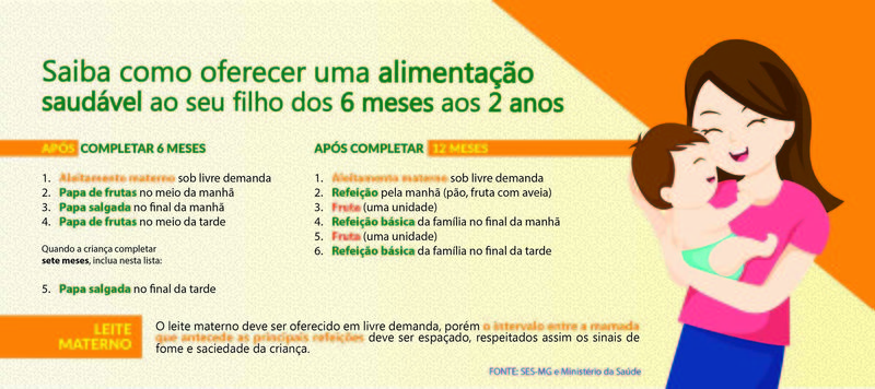 “Mesmo com a alimentação complementar, a amamentação em livre demanda deve ser mantida até dois anos ou mais, conforme recomendação da Organização Mundial de Saúde (OMS)”, ressalta a nutricionista Nathália Beltrão, referência técnica em Alimentação e Nutrição da Secretaria de Estado de Saúde de Minas Gerais (SES-MG).