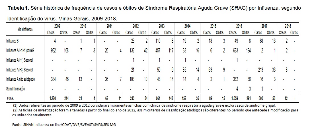 Belo Horizonte (5 casos Influenza A/H3 Sazonal); Contagem, Uberlândia e Varginha (1 caso cada cidade de Influenza A/H3 Sazonal); Araguari e Juatuba (1 caso cada cidade de Influenza A (H1NI) pdm09); Juiz de Fora e Lagoa Santa (1 caso cada de Influenza B).
