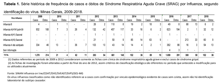 Resumindo: em 2018, foram confirmados, até o momento, 152 casos de Síndrome Respiratória Aguda Grave (SRAG) causados pelo vírus da Influenza (gripe). Foram notificados trinta e seis (36) óbitos associados ao vírus da Influenza.