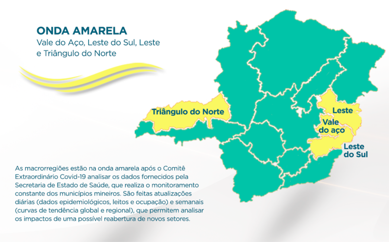 As macrorregiões Vale do Aço e Leste precisaram retornar para a onda amarela, juntando-se às regiões Triângulo do Norte e Leste do Sul. A fase permite a abertura de serviços não essenciais, como: