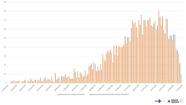 Com relação aos números da covid-19 em Minas Gerais, até o momento são 164.915 casos confirmados e 3.846 óbitos. Desses óbitos, 63 foram registrados no sistema da SES-MG nas últimas 24 horas — o que não significa que essas mortes aconteceram no mesmo dia.