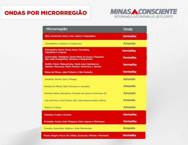 Clique aqui para conferir a listagem dos 853 municípios mineiros com a classificação por ondas.
