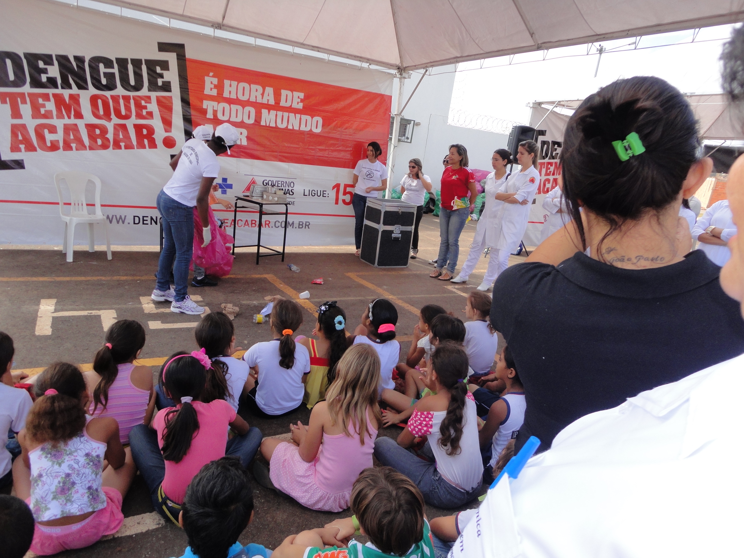 Ainda no estande da SES junto com o Dengômetro, diversas participações no evento “Minha Cidade Sem Dengue” reuniram moradores de todas as idades, principalmente crianças dos bairros Canaã e Novo Horizonte.