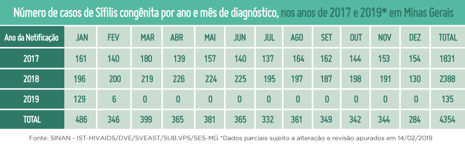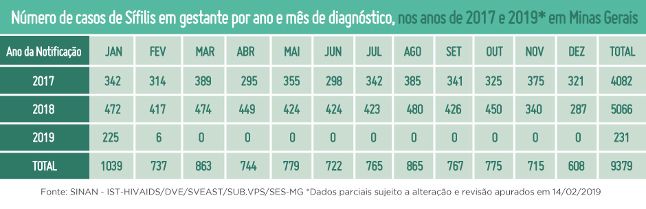 Em 2018, Minas Gerais registrou 5.066 casos de sífilis em gestante. Em 2019, até o dia 14 de fevereiro, o Estado teve notificação de 231 casos da doença.