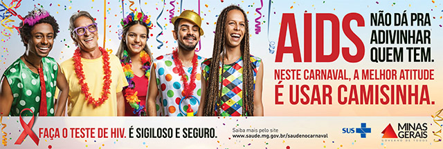 Para sensibilizar a população sobre a importância da prevenção da Aids e as Doenças Sexualmente transmissíveis (DSTs) durante o carnaval, a Secretaria de Estado de Saúde de Minas Gerais (SES-MG) lança a campanha: “Aids: não dá pra adivinhar quem tem. Neste carnaval, a melhor atitude é usar camisinha sempre”. A campanha será trabalhada com ações de mídia para rádio, internet, rodoviária, aeroporto e outdoors no interior, ela também será feita nas redes sociais da SES-MG, incluindo a criação de um site (www.saude.mg.gov.br/