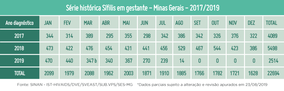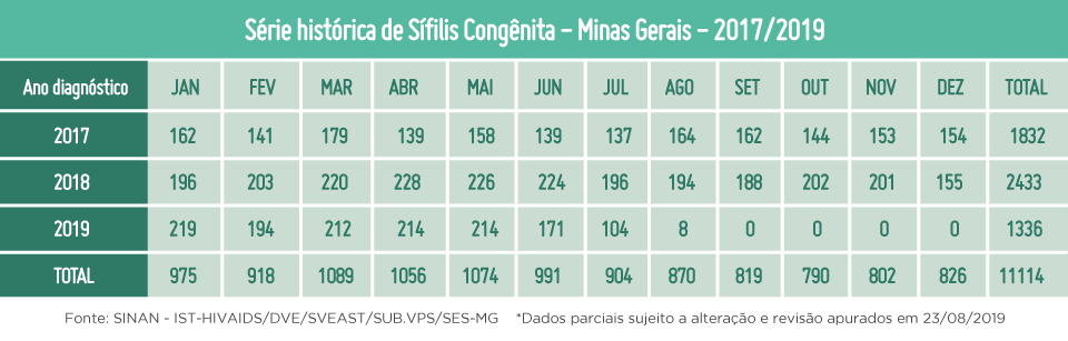 Em 2018, Minas Gerais registrou 2.433 casos da sífilis congênita. Em 2019, até o momento, foram notificados 1.336 casos pela infecção.