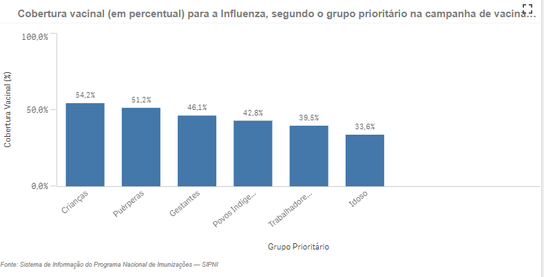 Os demais grupos prioritários (gestantes, mães recentes, trabalhadores da saúde e idosos) também estão contemplados no programa de vacinação contra a covid-19. Dessa forma, embora haja necessidade de ampliar a vacinação nesses grupos, há a relação entre o tempo de 14 dias entre a vacinação de uma doença e outra. Essa pode ser uma variável para explicar a baixa procura – menor que 60%- dos demais públicos em relação à vacinação contra influenza.